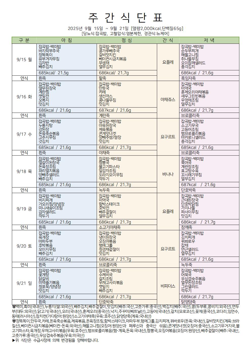 2025.09.15~2025.09.21 식단표