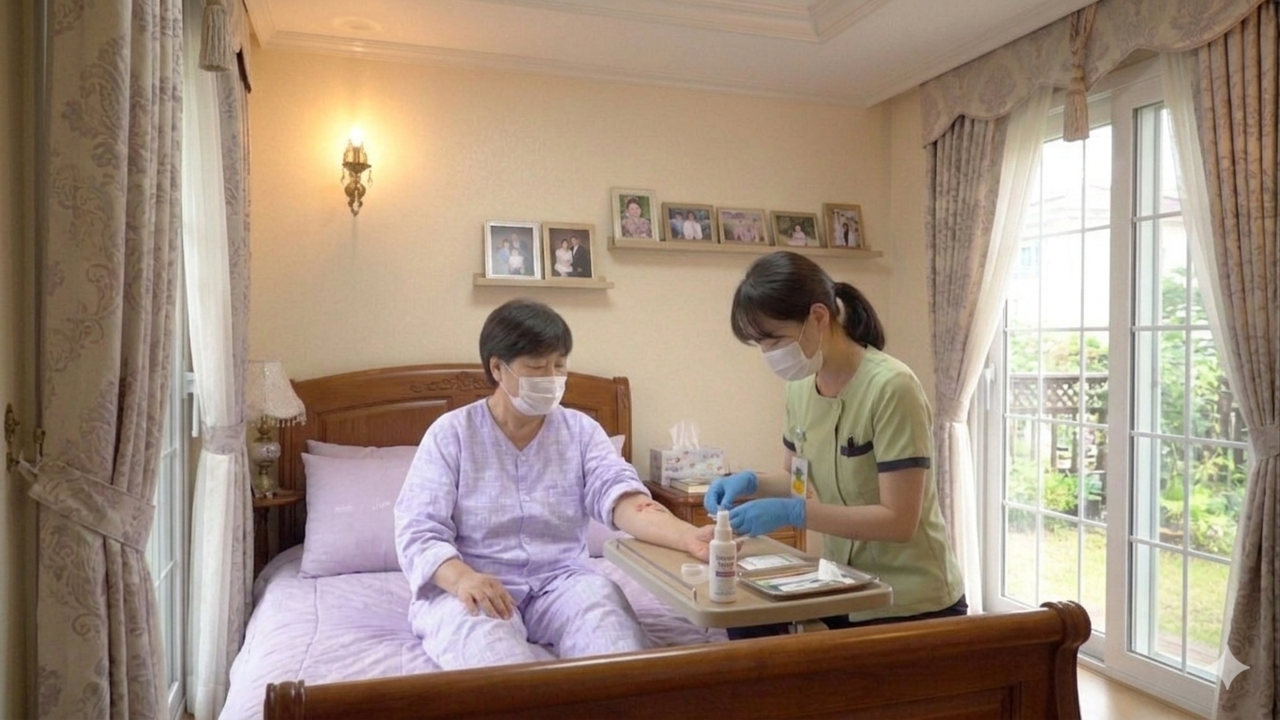 가정전문간호사가 가정이나 요양시설로 방문하여 의사의 처방에 따라 병원에서와 같은 양질의 계속적인 치료와 간호를 제공하는 입원대체 간호서비스입니다.
